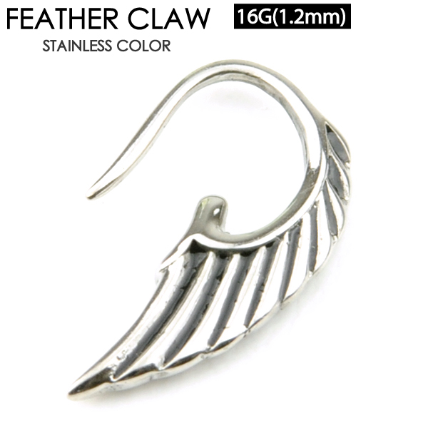 メール便 送料無料 クロー ◆フェザー 孔雀の尾羽ような翼◆ 16G(1.2mm) サージカルステンレス316L【ボディピアス クロー クロウイヤーロブ】大天使 ミカエル(ミハエル ミハイル)羽 14ゲージ(1.6ミリ)┃
