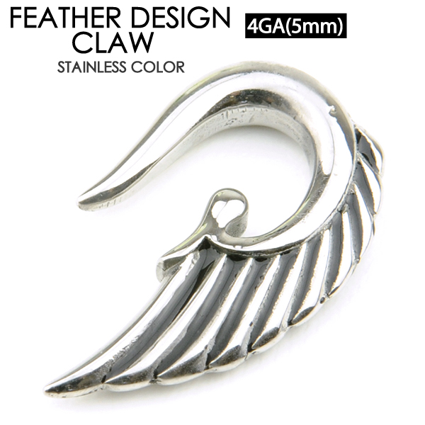 メール便 送料無料 クロー ◆フェザー 孔雀の尾羽ような翼◆ 4G(5mm) サージカルステンレス316L【ボディピアス クロー クロウイヤーロブ】大天使 ミカエル(ミハエル ミハイル)羽 4ゲージ(5ミリ)┃