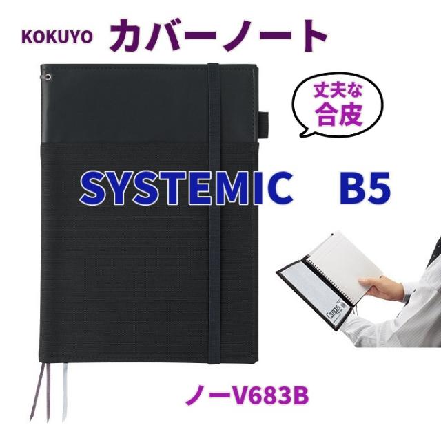 コクヨ カバーノート 黒 B5 ノ-V683B システミック 3400円 メール便 送料無料 合皮 ポリエステル ノート2冊収納 ビジネス 打ち合わせ 会議 予定