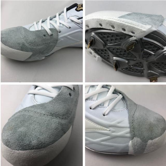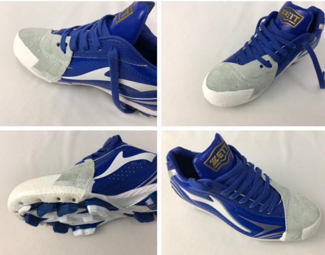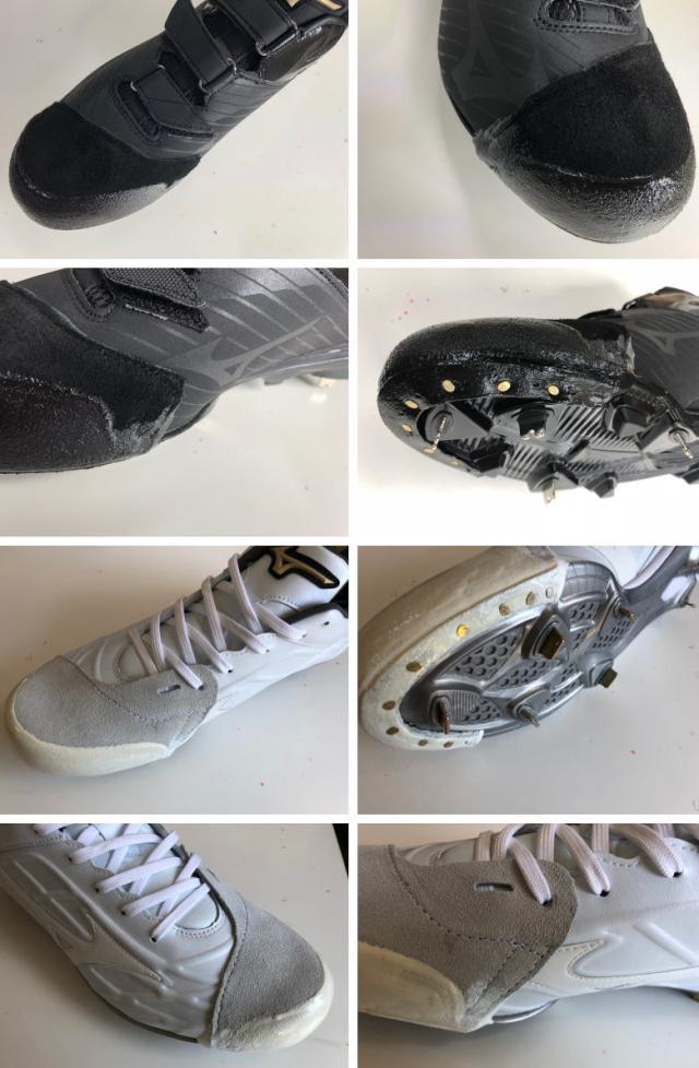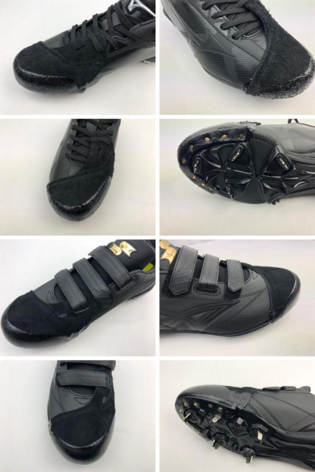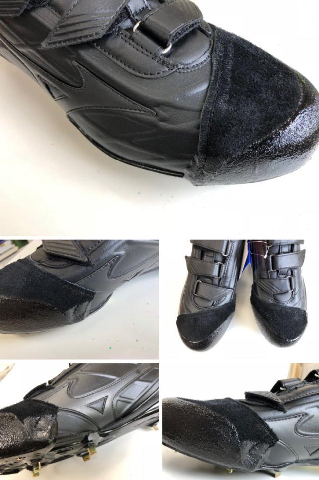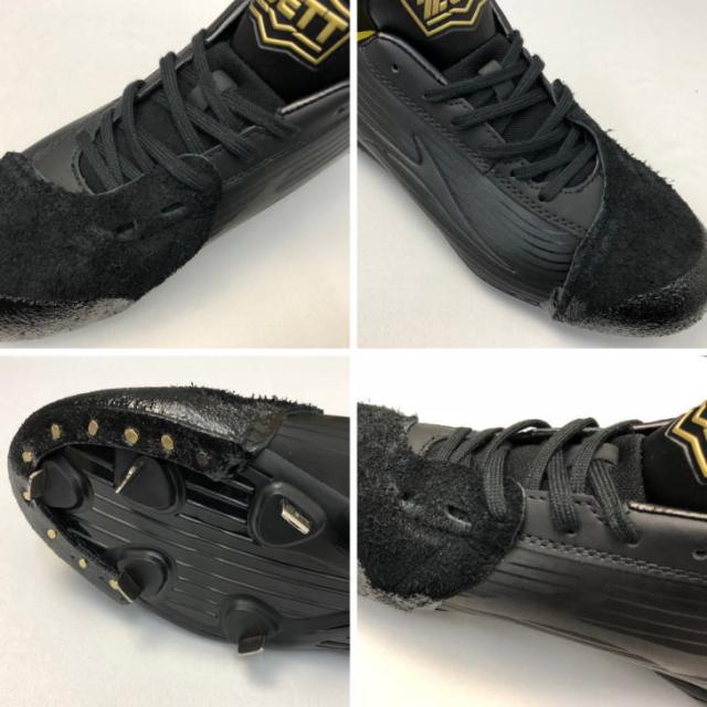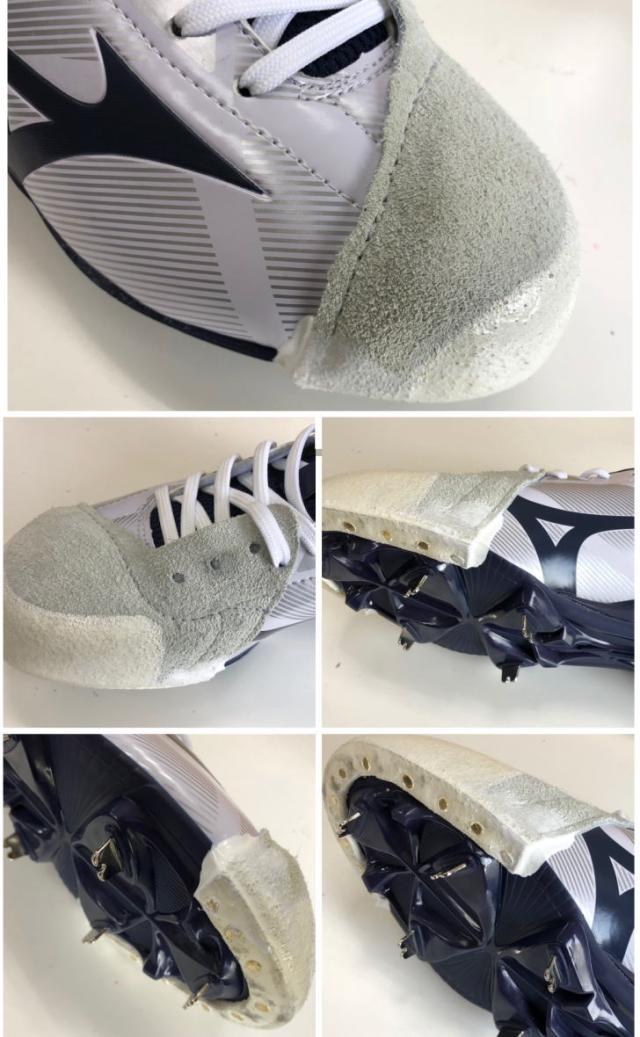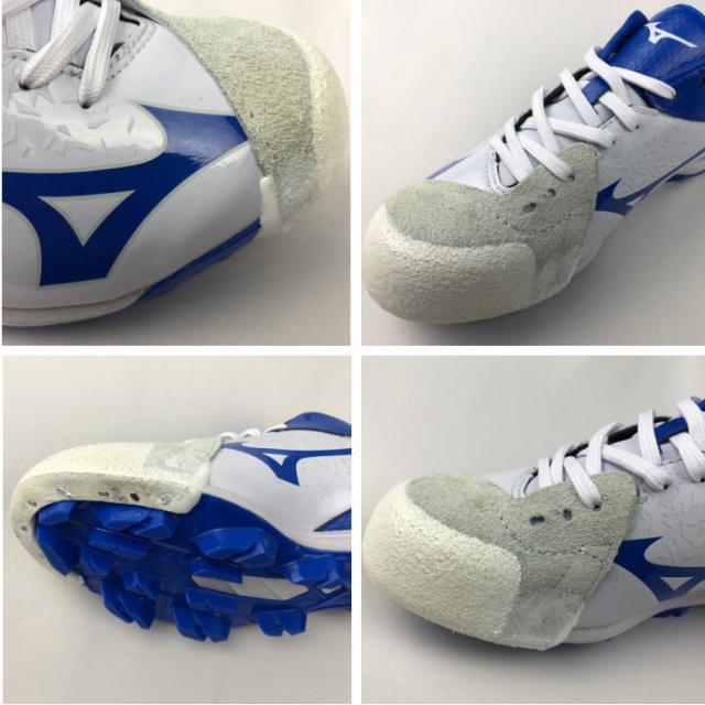 | 特徴 | スパイクP革加工で強度抜群です。 投球やバッティング時にスパイクつま先が磨耗するため、 補強のためつま先に革を打ち付けます。 砂が入りづらく、補強度も抜群なので多くの中高生に気です。 (アッパー部分はミシンで縫います。) ( 左右どちらか片方の金額になります。) ※P革の形は投手、野手兼用になります。 ※白のスパイクには白のカバーを取り付け致します。 |