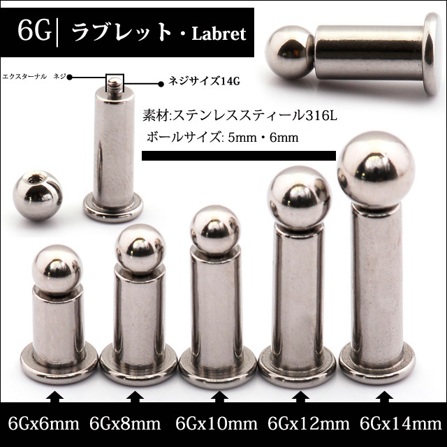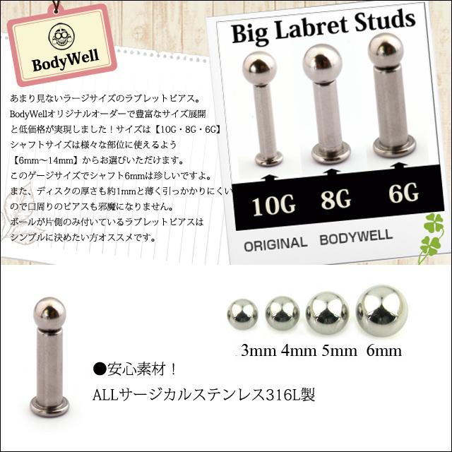 ボディピアス 6G BIG ラブレットスタッズ オリジナルサイズ 拡張ピアス ステンレスピアス ロブ 軟骨ピアス 舌ピアス