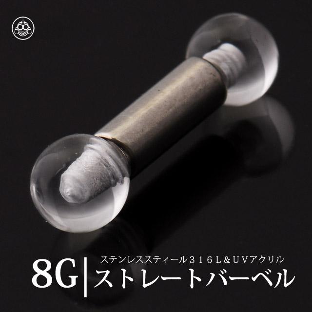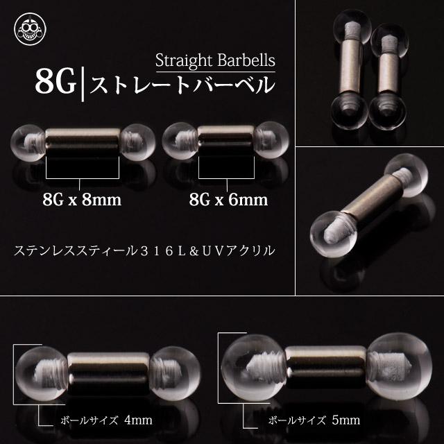 ボディピアス 8G 透明ピアス シークレット 隠せるピアス クリアボール ステンレスシャフト ストレートピアス 拡張ピアス