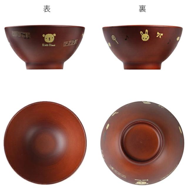 お子様の食事にピッタリな軽くて割れにくい木製風のお茶碗です。かわいいくまさんやうさぎちゃんのイラストが描かれています。表面は熱や汚れに強いウレタン塗装でお手入れも簡単です。