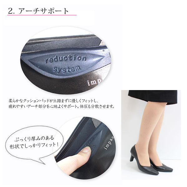 パンプス 痛くない 疲れない レディース 靴 日本製 7cmヒール 歩きやすい Uカット Vカット ツヤあり 美脚 黒 ブラック 7センチ 革靴 オフィス フォーマル 仕事 通勤 就活 冠婚葬祭 走れる 大きいサイズ impact material 6620 6630 6320 6330 ギフト