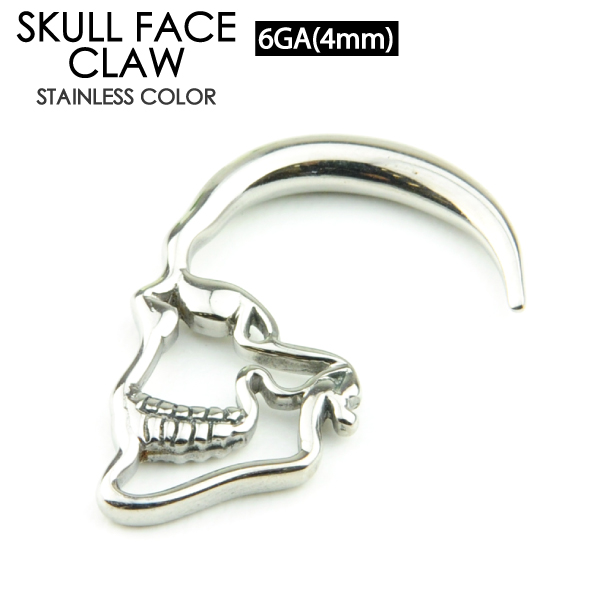 メール便 送料無料 クロー ◆横顔 スカル フェース◆ ボディピアス 6G(4mm) サージカルステンレス316L 【ボディピアス 髑髏 スカル 骸骨 イヤーロブ】6ゲージ(4ミリ) ┃