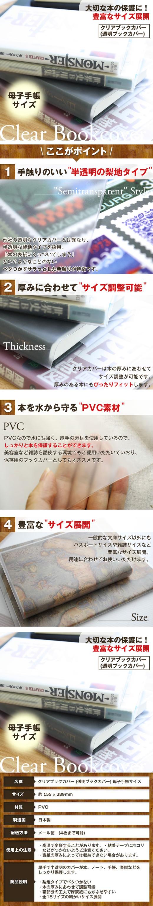 【メール便可】 ブックカバー 母子手帳 年金手帳 半透明 クリアカバー C-2 厚手 コンサイス 日本製 ( 梨地タイプ PVC 書籍カバー 文房具 保護カバー 便利グッズ )