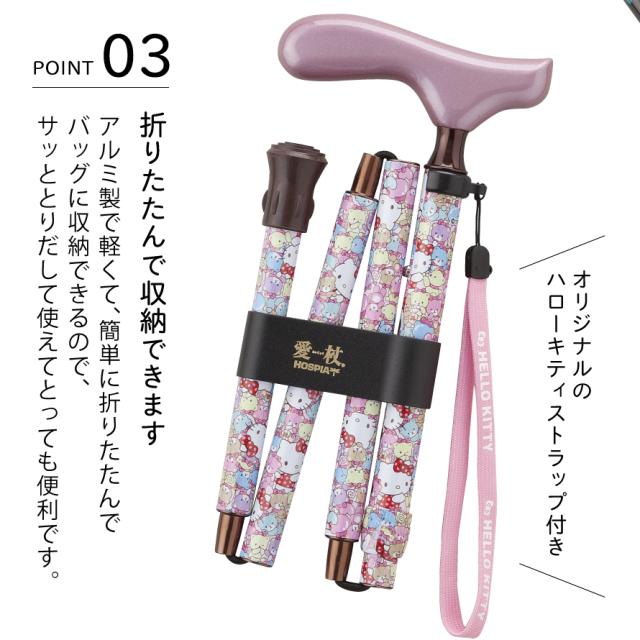 杖 折りたたみ杖 敬老の日ギフト プレゼント ハローキティ 折りたたみステッキ 折りたたみ式杖 軽量 軽い アルミ ストラップ付き 愛杖 おしゃれ お洒落 かわいい 骨折 入院 SGマーク スリムネック 持ちやすい 安心 安全 ギフト キャラクター杖 敬老の日 ギフト プレゼント