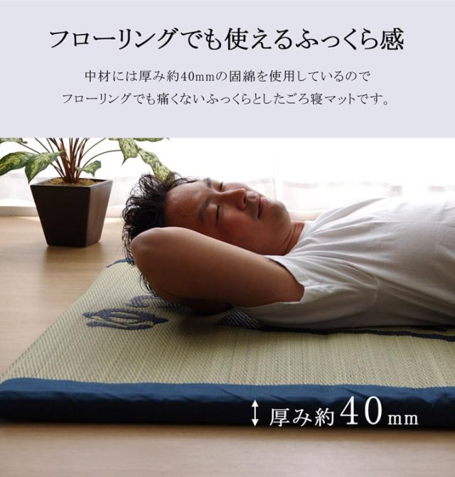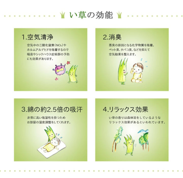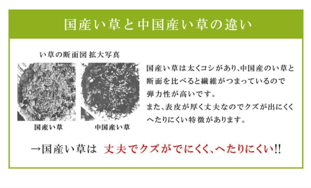 | 側地=い草 ※普通織 中材=固わた40mm ヘリ=綿100%(返し二方) |