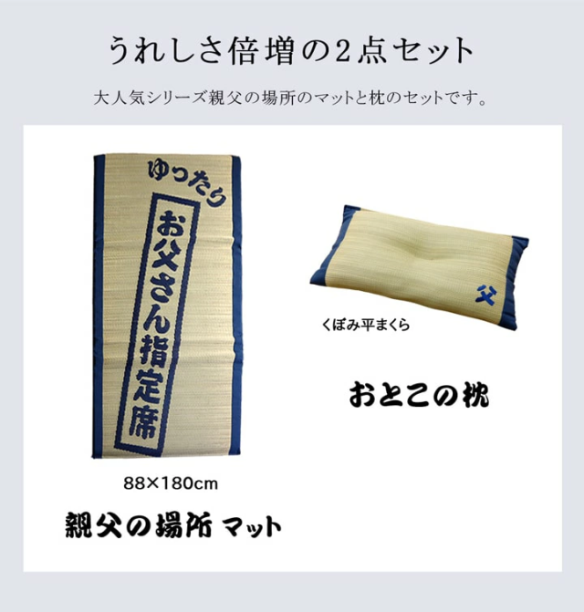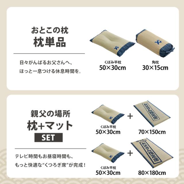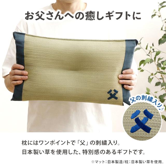 父の日 プレゼント い草 まくら マット セット い草まくら い草マット 日本製 ふっくら ゆったり ギフト 「 もっと親父の場所マット&くぼみ平枕セット 」 国産 抗菌防臭 ごろ寝 お昼寝 快眠 男性 30代 40代 50代 60代 70代