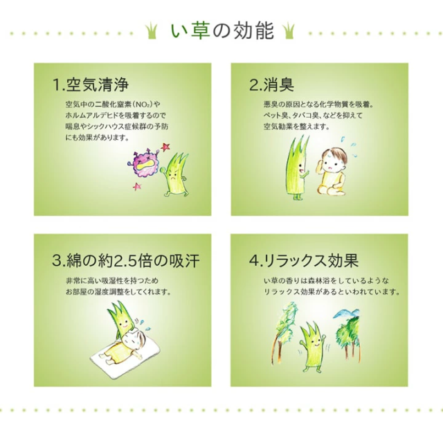 | 側地=い草(九州産)※メセキ織 中材=低反発ウレタンチップ100% ヘリ=綿100% |