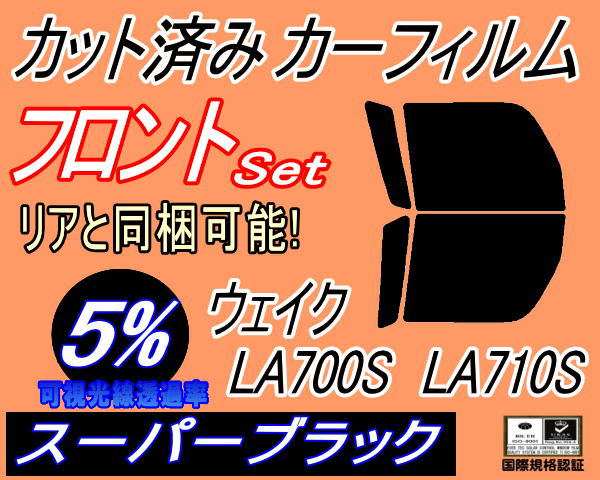 フロント (b) ウェイク LA700S LA710S (5%) カット済みカーフィルム 運転席 助手席 三角窓 左右セット スモークフィルム フロントドア 車種別 スモーク 車種専用 成形 フイルム 日よけ 窓 ガラス ウインドウ 紫外線 UVカット WAKE ウエイク LA700 ダイハツ