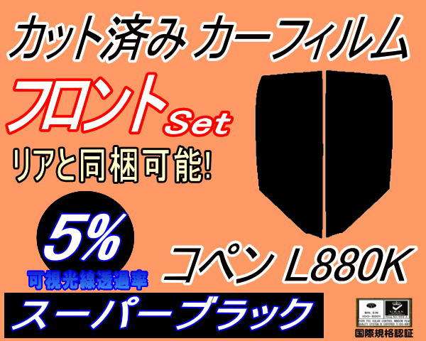 フロント (s) コペン L880K (5%) カット済みカーフィルム 運転席 助手席 三角窓 左右セット スモークフィルム フロントドア 車種別 スモーク 車種専用 成形 フイルム 日よけ 窓 ガラス ウインドウ 紫外線 UVカット ダイハツ