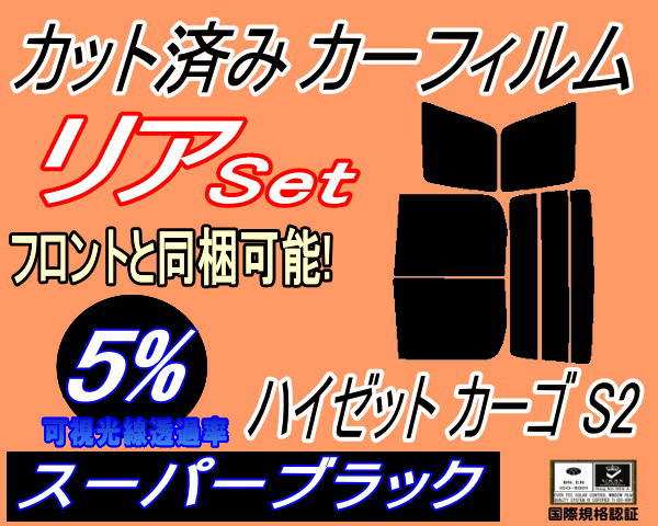 【送料無料】リア (b) ハイゼット カーゴ S2 (5%) カット済みカーフィルム リアー セット リヤー サイド リヤセット 車種別 スモークフィルム リアセット 専用 成形 フイルム 日よけ 窓ガラス ウインドウ 紫外線 UVカット 車用 S200V S210V S220V 220G S230V 230G ダイハツ
