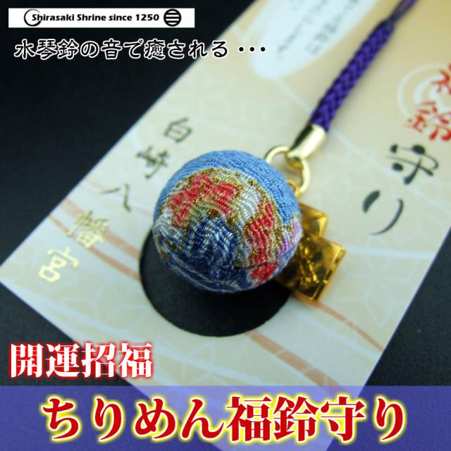 開運招福 ちりめん福鈴守り 紺 根付タイプ 神社で祈願済み 癒し/水琴窟の音色