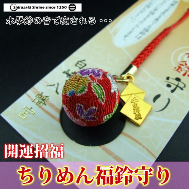 開運招福 ちりめん福鈴守り 赤 根付タイプ 神社で祈願済み 癒し/水琴窟の音色