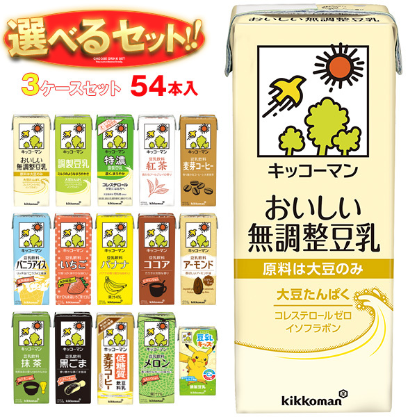 キッコーマン 豆乳飲料 選べる3ケースセット 200ml紙パック×54(18×3)本入| 送料無料 紀文 無調整 調製豆乳 紅茶 特濃 コーヒー
