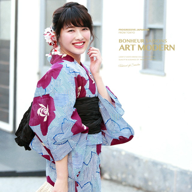 浴衣セット レディース レトロ 浴衣セット 大人 3点セット 青 ブルー 赤 黒 花 縞 ストライプ 綿 兵児帯 女性 ボヌールセゾン