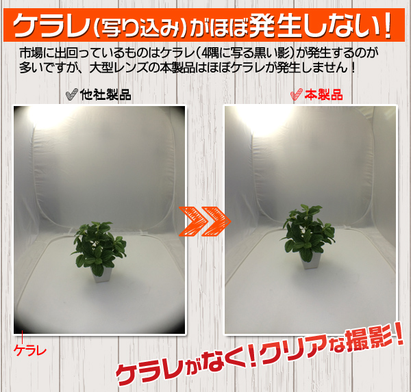 ■ 市場に出回っているものはケラレ(4隅に写る黒い影)が発生するのが多いですが、大型レンズの本製品はほぼケラレが発生しません!
