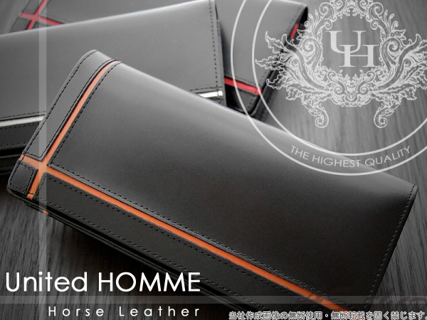 クロスライン 馬革 長財布 財布 メンズ United HOMME ユナイテッドオム ホースレザー ロングウォレット 短財布 革 オレ