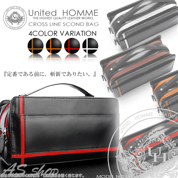 | United HOMME クロスライン×馬革 ダブルファスナーセカンドバッグ | |||||||||