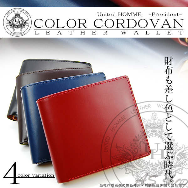 【送料無料】コードバン×牛革 二つ折り 財布 メンズ 本革 レザー 【United HOMME-President-】ユナイテッドオムプレジデント 4COLOR シ
