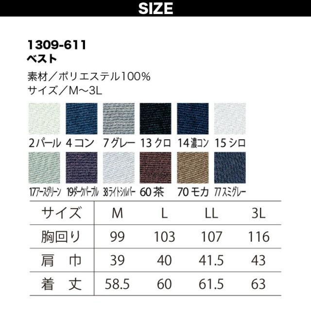 寅壱 1309-611 ベスト INFINITY MAX ポリエステル素材 作業着