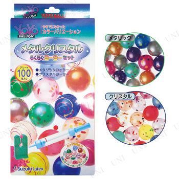 | セット内容 | ・ヨーヨー風船アソート(メタリック、クリスタル)×100 ・糸ゴム×100 ・スタンド×1 ・らくらくポンプ×1 ・作り方説明書×1 ・つり紙×100 ・つり針×30 ・サイズゲージ×1 ・しばらずパッチンクリップ×100 ※上記以外は付属しません |
