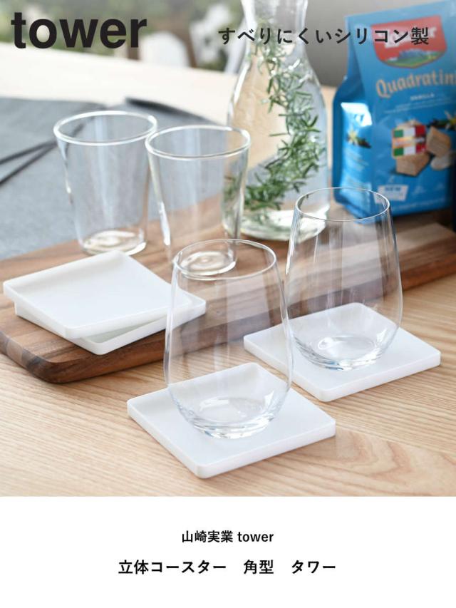 tower 山崎実業 立体コースター タワー 角型 ( 4903208025362 タワーシリーズ コースター スクエア シリコン製 シリコンコースター 立体型コースター 四角 おしゃれ キッチン用品 キッチン雑貨 シリコン 滑りにくい 洗える 山崎実業 tower キッチン)