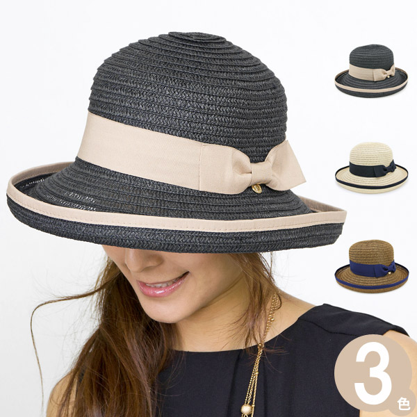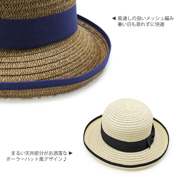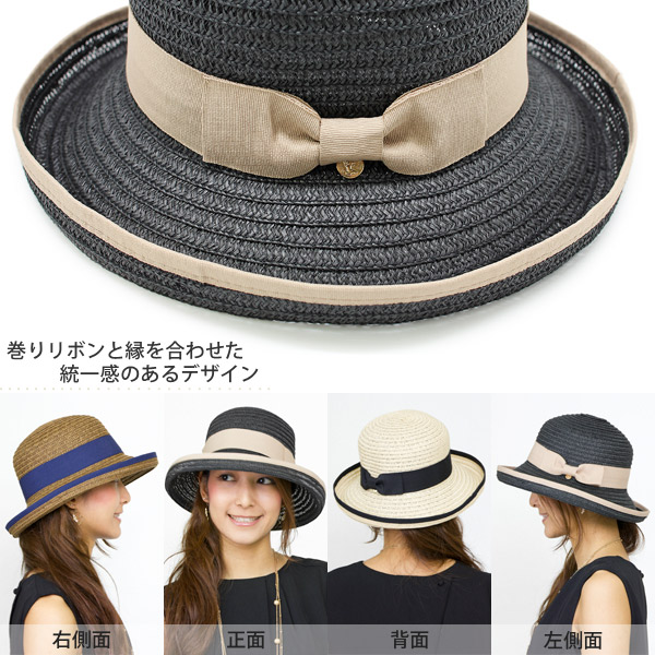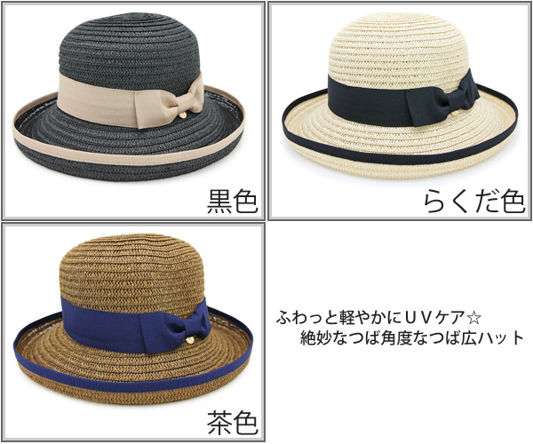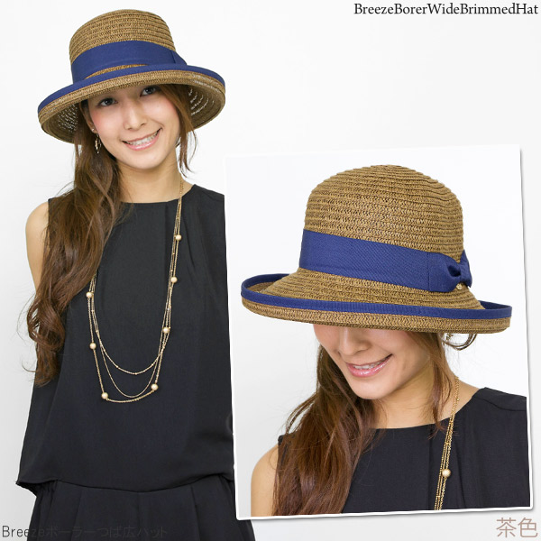 ハット 女優帽 帽子 つば広 レディース UV対策 ペーパーハット リボン / Breezeボーラーつば広ハット
