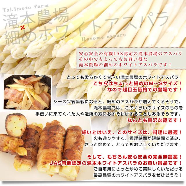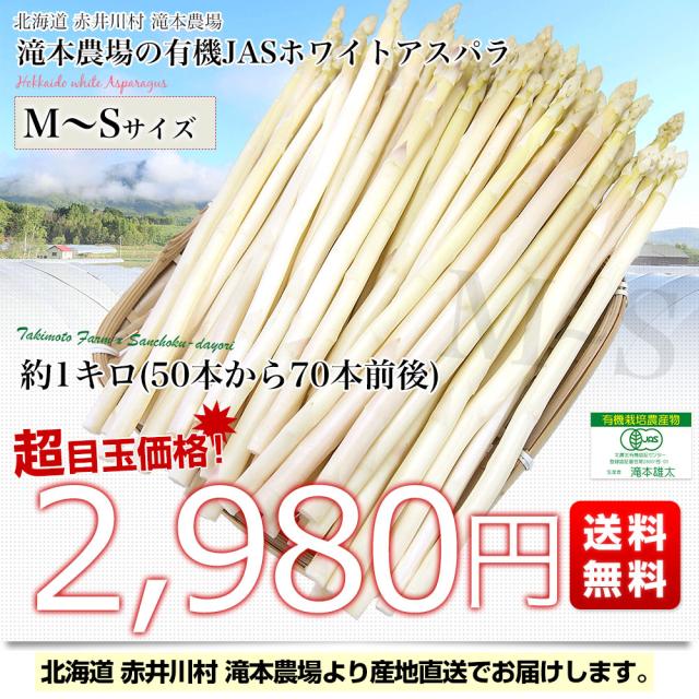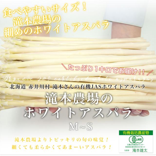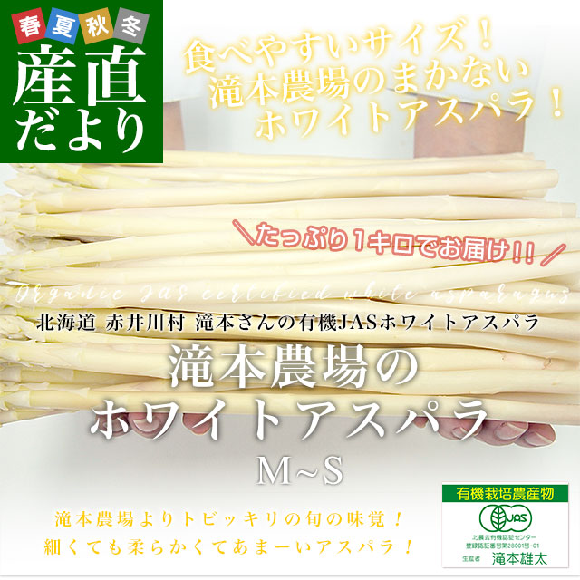 北海道より産地直送 赤井川村滝本農場の有機JAS認定ホワイトアスパラ MからSサイズ 1キロ 送料無料 アスパラガス ※クール便発送【発送時期:カート内に記載しております】
