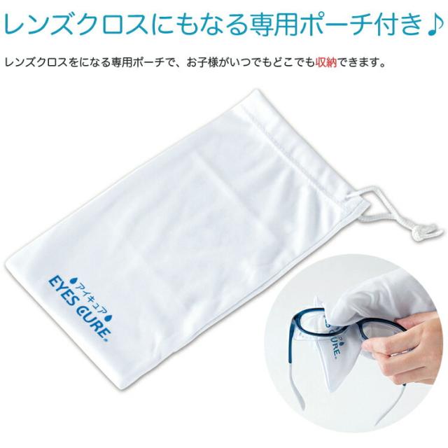 | 子供の眼鏡を収納するのに便利な、レンズクロスにもなる専用ポーチがついています。 |
