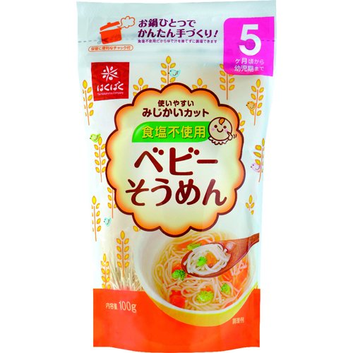 【目安】 月齢の目安:5-6か月頃 ■内容量 100g ■原材料 小麦粉 栄養成分 【100g当たり】 エネルギー:351kcal、たんぱく質:11.2g、脂質:1.8g、炭水化物:72.6g、ナトリウム:30mg未満 ■お召し上がり方 【作り方】 1:小さいなべに水を沸騰させます。めんをバラバラと入れ、4分半ゆでます。月齢に合わせためんの量、用意する水の量は下記を参考にしてください。 2:器に移し、はさみ、スプーン等でめんの大きさを調整してから与えてください。
