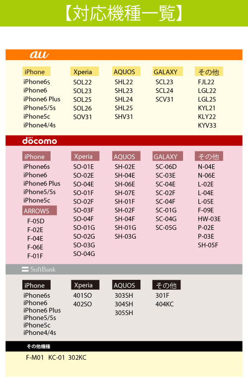 AQUOS CRYSTAL 305SH/AQUOS PHONE Xx mini 303SH/ARROWS A 301F/Xperia Z4 402SO/Xperia Z3 401SO/DIGNO U 404KC