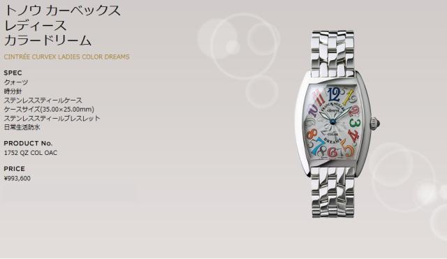フランクミュラー FRANCK MULLER トノーカーベックス カラードリームス 1752QZCD クォーツ レディース SS 新品
