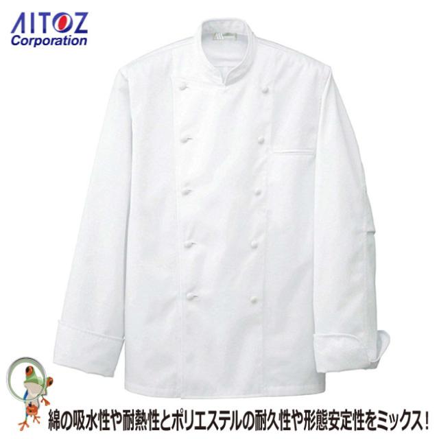 コックコート HH480 長袖 白 ホワイト【アイトス 料理人 フランス料理 イタリア料理 コック長 料理人 調理服 白衣 厨房 ユニフォーム コック服 和食】
