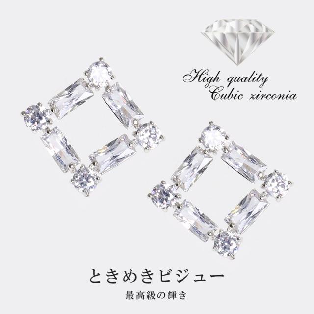 ピアス レディース スクエア ビジュー キュービックジルコニア シンプル おしゃれ 大人 きらきら 入学式 卒業式 卒園式 オケージョン 送料無料!