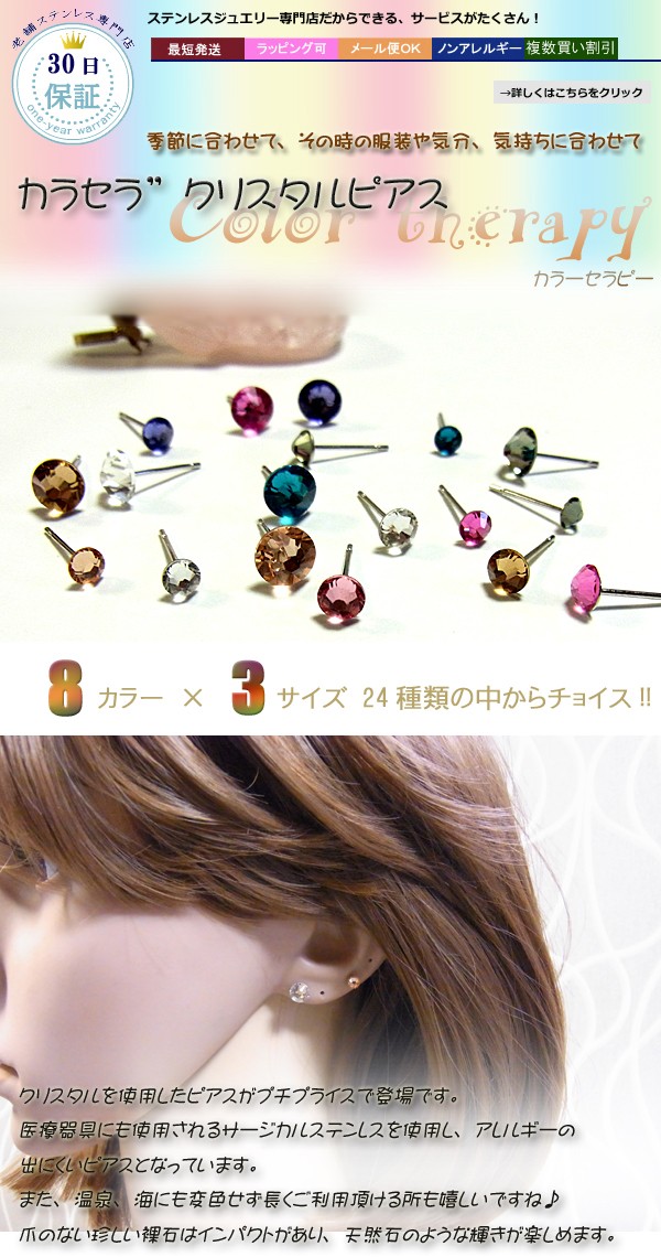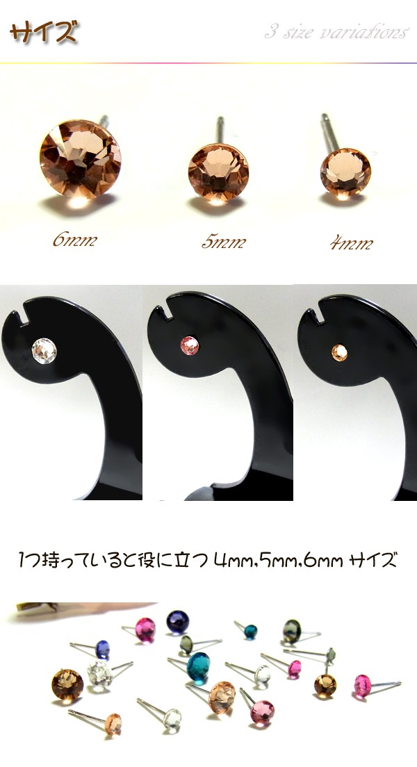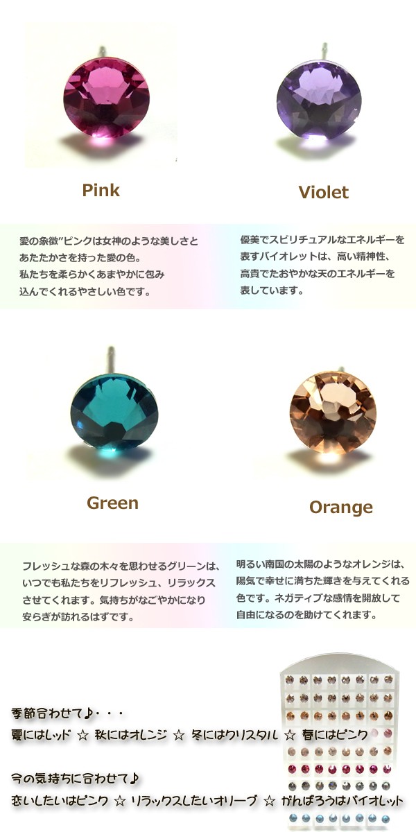 8カラー×3サイズ24種類の中からチョイス!! クリスタルを使用したピアスがプチプライスで登場です。