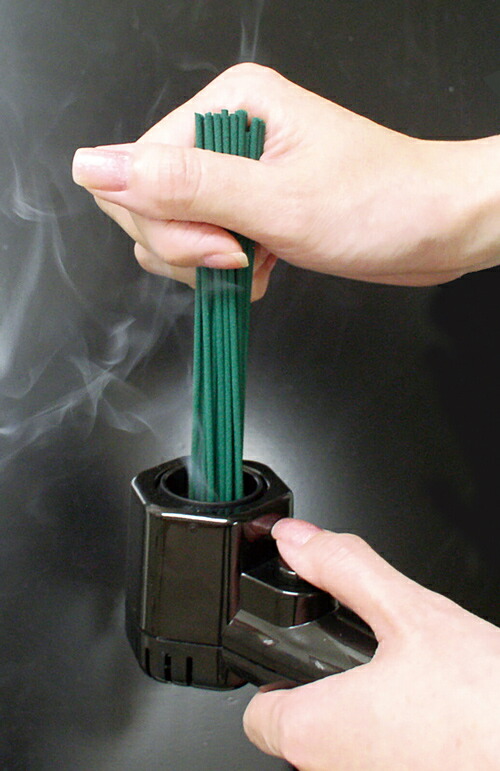 ターボ式線香ライター 龍炎 風の強い日に安全。お手軽に線香に火をつけることができる専用ライター りゅうえん ターボ線香ライター ![]() 雨や風をものともせず線香にしっかり着火!! ご先祖様を供養するお墓参りの必需品です!! ![]() お墓参りなどの際、雨や風が強くてお線香の束に着火しづらかった、着火できなかったという事ありませんでしたか? このターボ式線香ライターならスイッチを押しながら着火部に線香を当てるだけで一束丸ごと約20秒間で着火できます。 ![]() ![]() しかも炎が出ないので強風の時でも安心です。 ガスライター用のボンベで燃料が補充でき繰り返しご利用いただけます。 ![]() | ||||