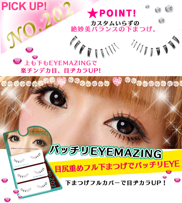 ![]() ![]() EYEMAZING 001 激盛り大きく丸く可愛く ![]() EYEMAZING 002 即効ハーフ 繊細な細毛ビッシリ ![]() EYEMAZING 003 スウィート 絶妙なバランスで馴染む ![]() EYEMAZING 201 ドーリー下まつ毛 束感目尻 ポイント付け ![]() EYEMAZING 202 フル下まつ毛 目尻重めフルカバーでバッチリ | |