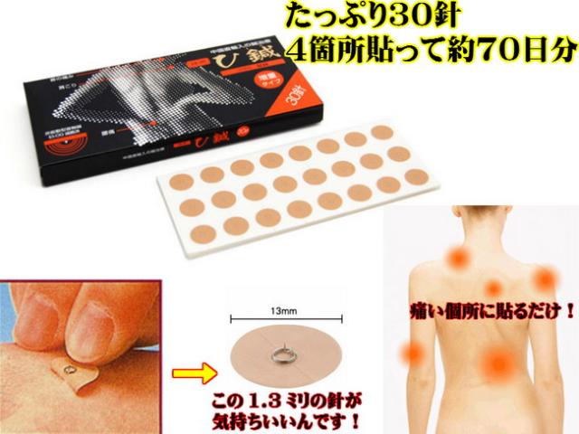 ツボを気にせず、気になるところに貼るだけ特殊金属性と1.3ミリの極小の針針の太さ直径0.22mm 針の長さ1.3mm〜1.5mm 絆創肯(メッシュ)12mmにて針を固定1箱30針入り■使用上の注意をよくお読みになってからご使用下さい。■中国製※使用感には個人差がございます。※お一人様につき1点です。おまけの色などは選べません。