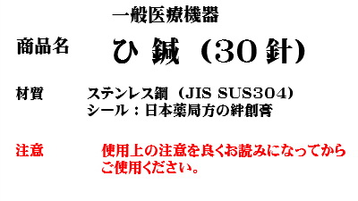 神州 ひ鍼 (30針入り) ハリ はり