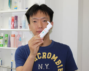 [STEP0]適量を歯ブラシに噴霧して歯を磨く。(1回の使用時、7〜8吹前後)