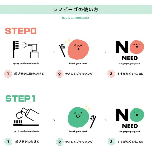 レノビーゴ フッ素配合スプレー STEP0 / STEP1 医薬部外品 フッ素スプレー フッ素塗布 RENOVIGO レノビーゴSTEP0 レノビーゴSTEP1 液体歯磨剤 日本製 ![]()