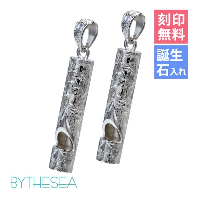 ハワイアンジュエリー シルバー ペアペンダントトップ 2個セット 刻印 無料 誕生石入れ可 ホイッスル 笛 本当に鳴る ロジウムコーティング シルバー925 ネックレス チェーン別売 ペンダントヘッド カップル 夫婦 プレゼント 母の日 【品番:SP317P】