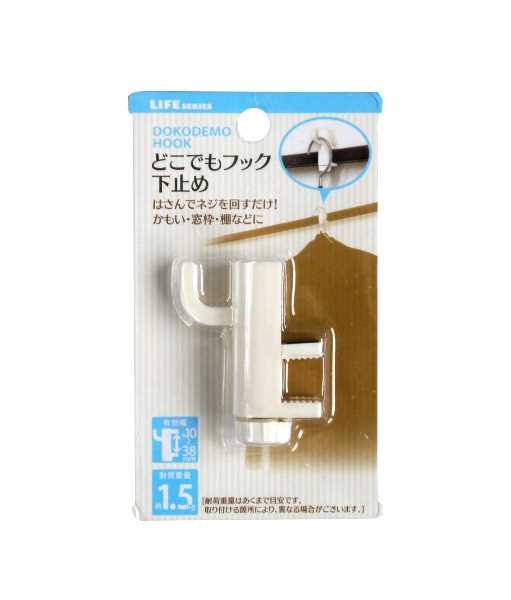 どこでもフック 下止め 5.9×1.9×奥行4.5cm 耐荷重1.5kg (100円ショップ 100円均一 100均一 100均)