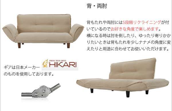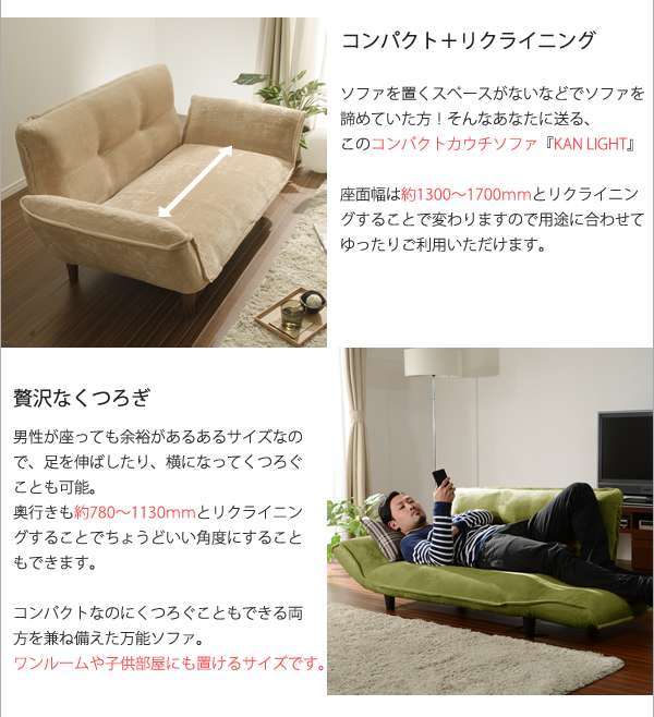 ソファ ソファー カウチソファ 2人掛け 布張り リクライニング 送料無料 コンパクトカウチソファ ローソファ A01 KAN light