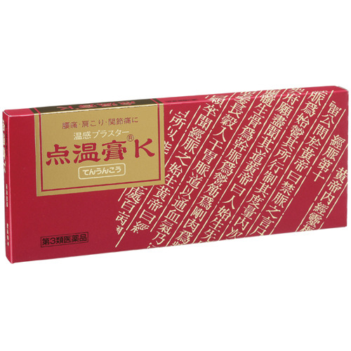●点温膏Kは、温感刺激のあるノニル酸ワニリルアミドや、血液の循環をよくするトコフェロール酢酸エステルなどを配合した小型の貼り薬で、肩こり、腰痛、関節痛などに効果。