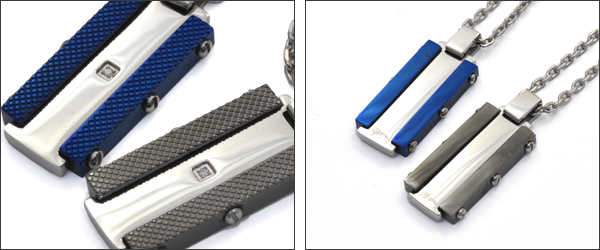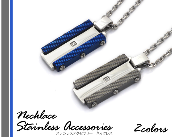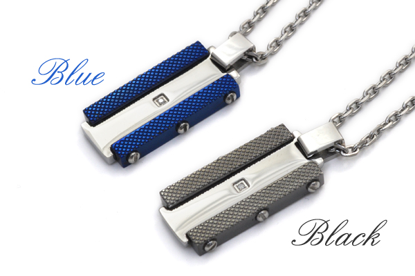 ステンレスネックレス 2色展開 ジルコニア付 プレートネックレス ブルー&ブラックネックレス 送料無料