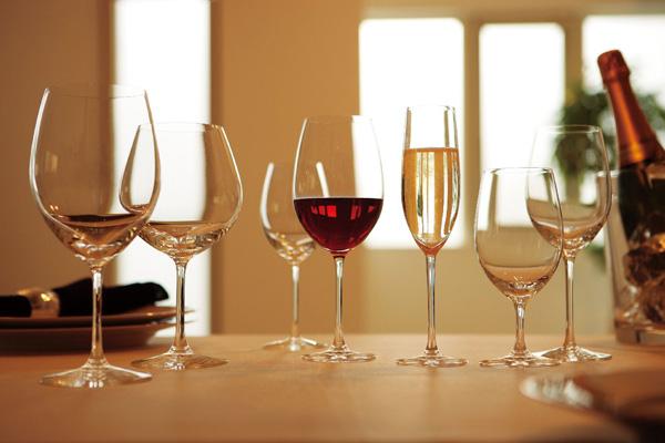 ●上品で繊細な泡立ちを楽しむために、気が抜けにくく炭酸ガスの持ちがよい、口部の狭い縦長フルート型の形状がおすすめです。底の中央から立ちのぼる泡を視覚的にも楽しめます。パーティーなどで、口部の広いソーサー型も使われます。