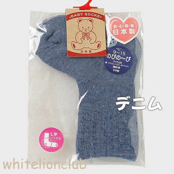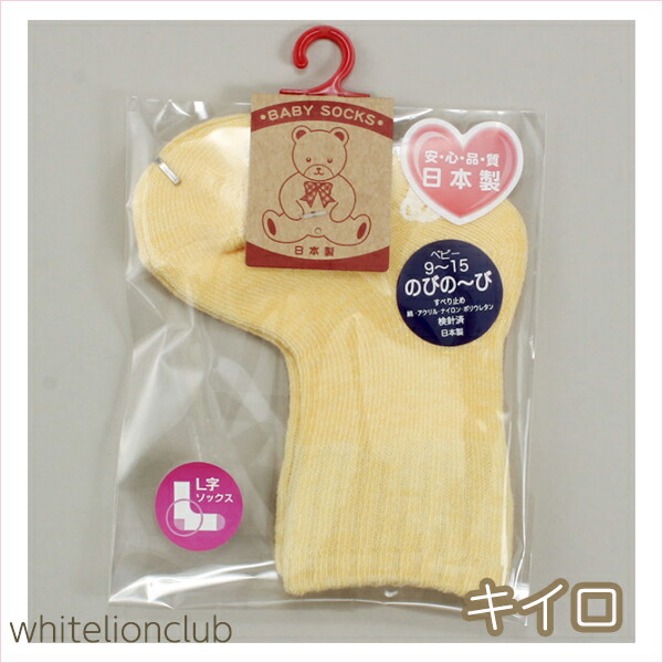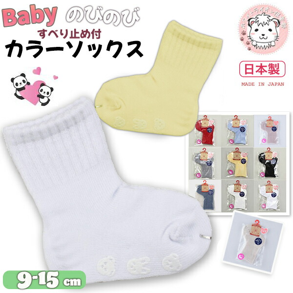 BABY SOCKS ベビーソックス 無地 のびのび すべり止め付 L字ソックス 赤ちゃん ベビー キッズ くつした 靴下 くつ下 ソックス 滑り止め 男の子 女の子 無地 のびのび